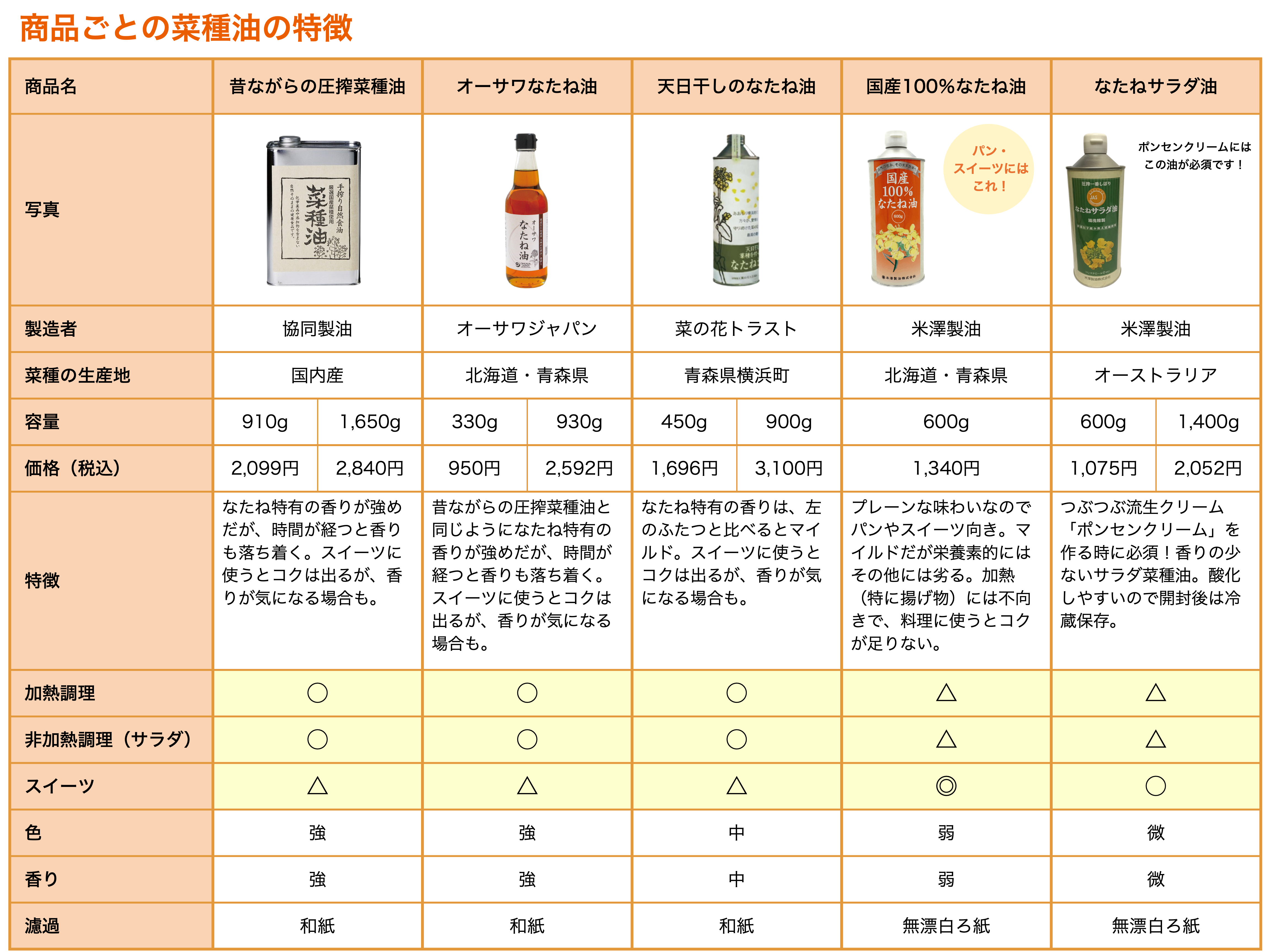 スイーツに向く菜種油