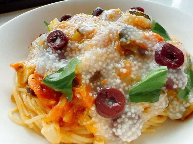レシピは【つぶつぶ雑穀パスタ 学陽書房 P38】に掲載 もちアワチーズのラタトゥイユパスタ